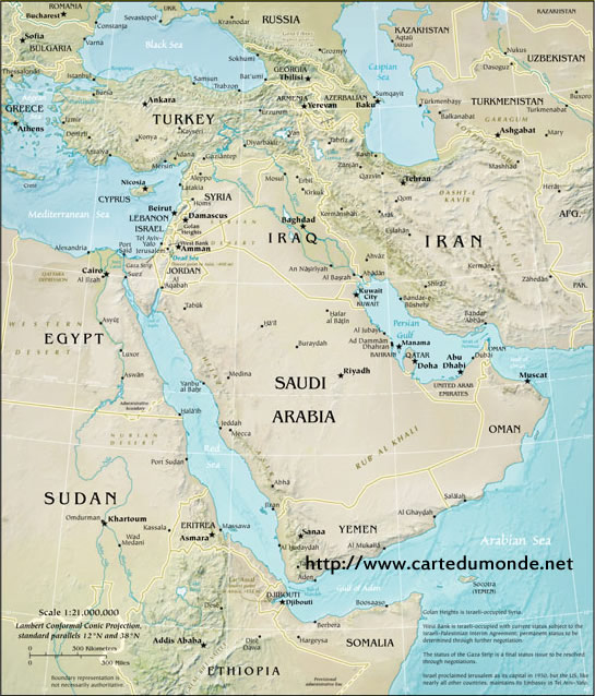 Mapa Físico del Oriente Medio