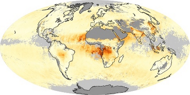 Profundidad óptica Mundial Mapa Aerosol