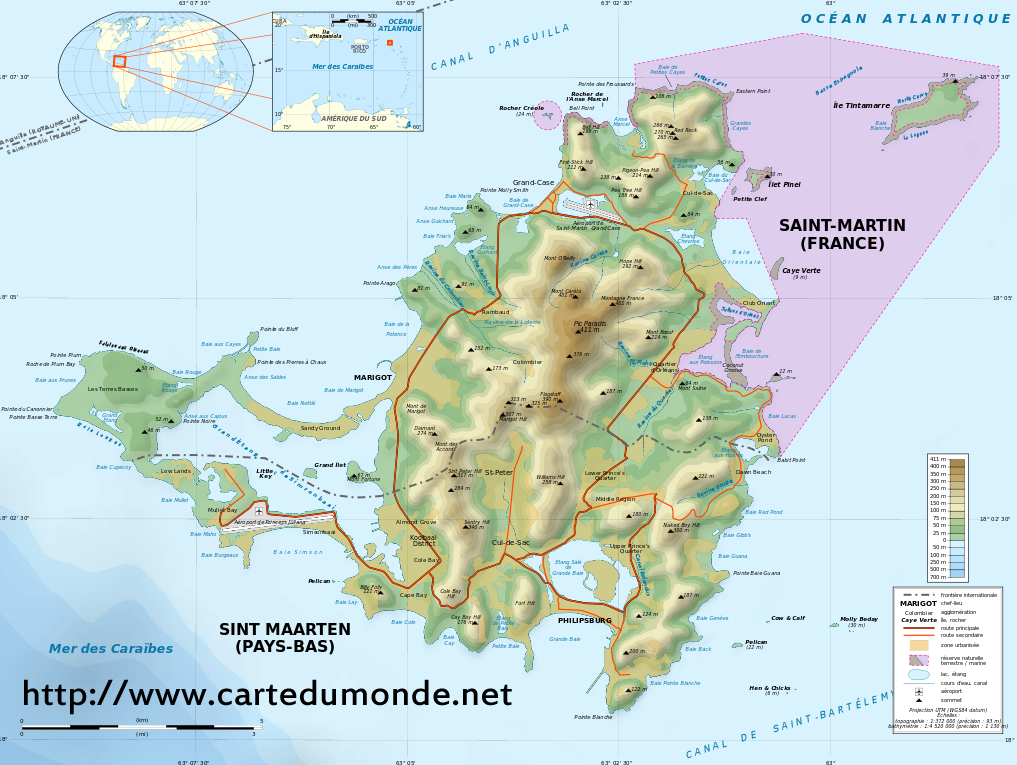 Mapa de San Martín (Antillas Francesas)
