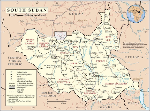 Mapa de Sudán del Sur