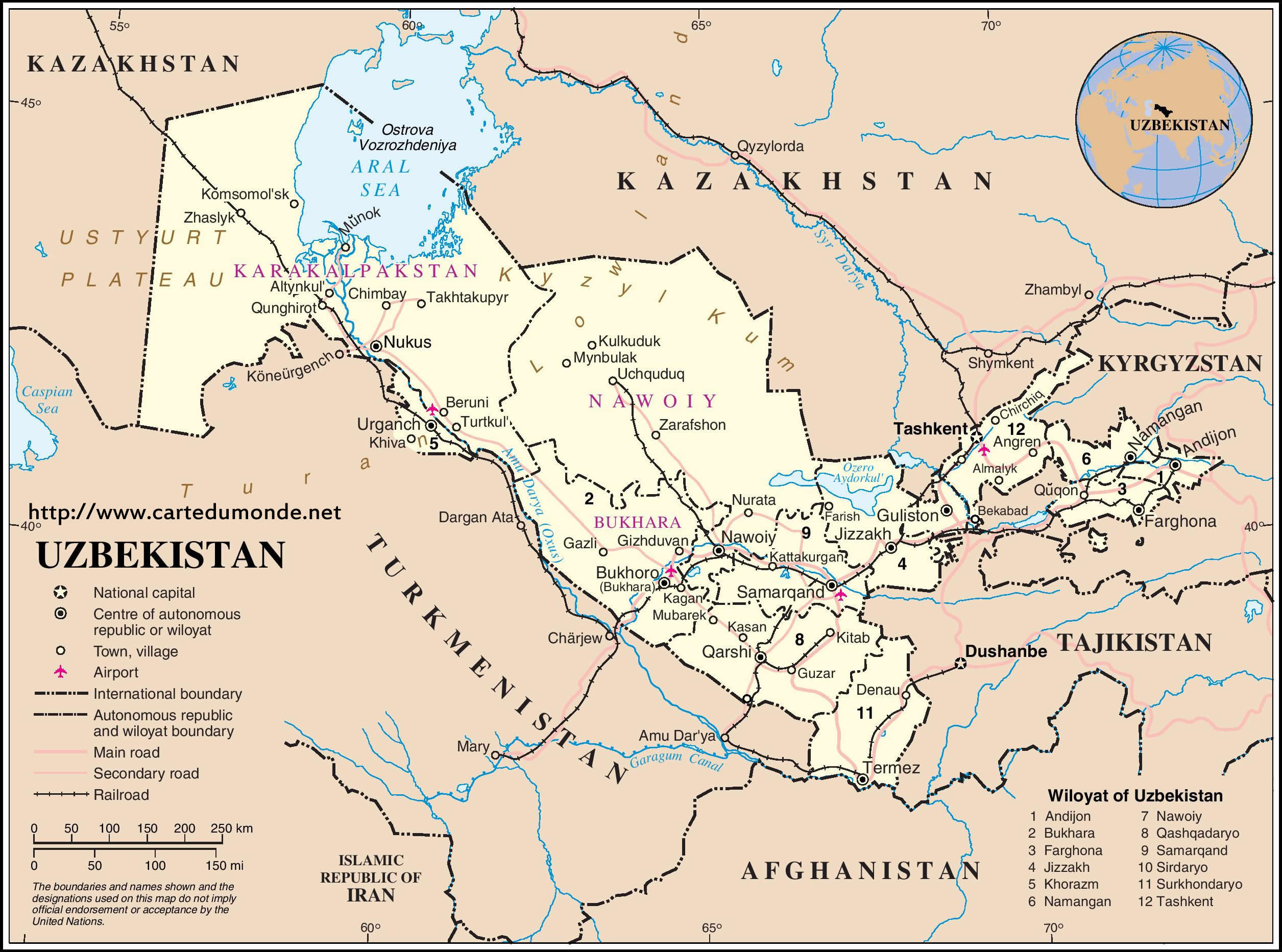 Mapa de Uzbekistán