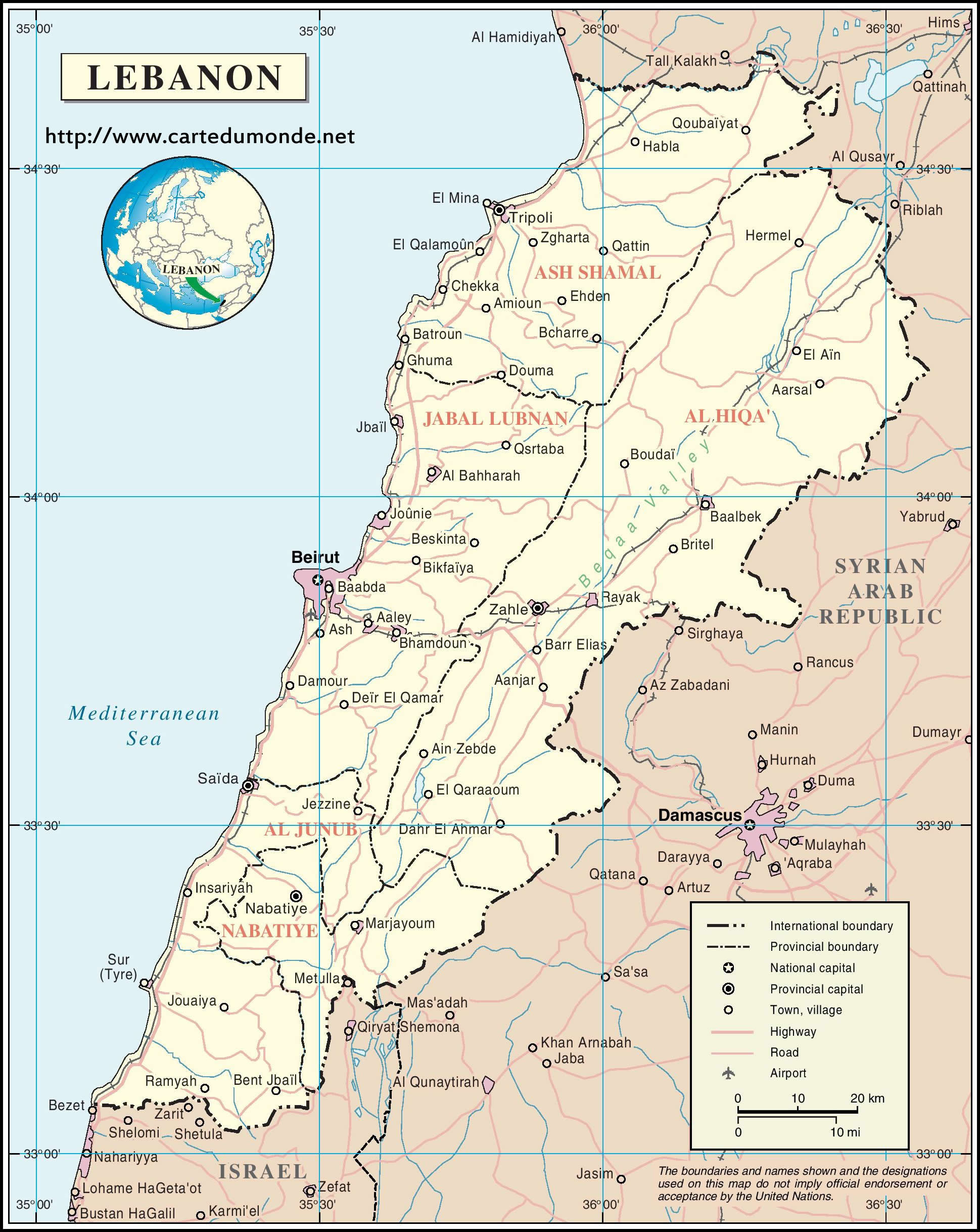 Mapa de Líbano
