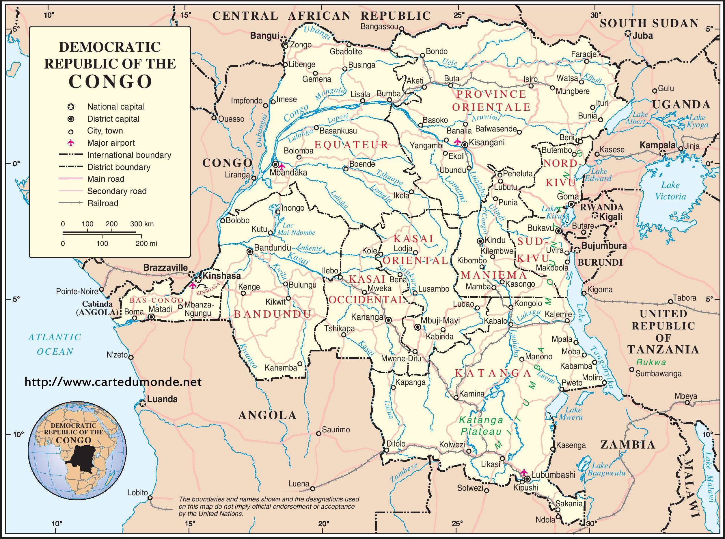 Mapa de República Democrática del Congo